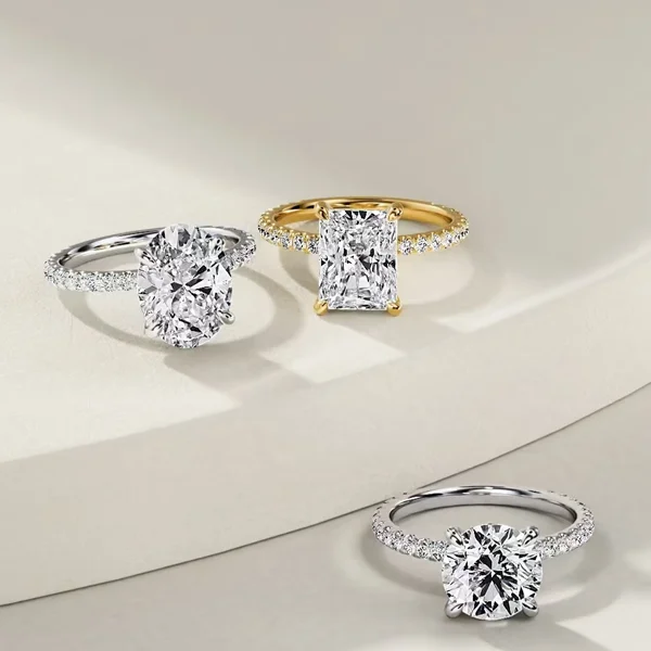 中国製ホワイトゴールドファインジュエリー結婚指輪Pave Halo Lab GrownダイヤモンドエンゲージメントリングバンドCVD合成ラボダイヤモンド