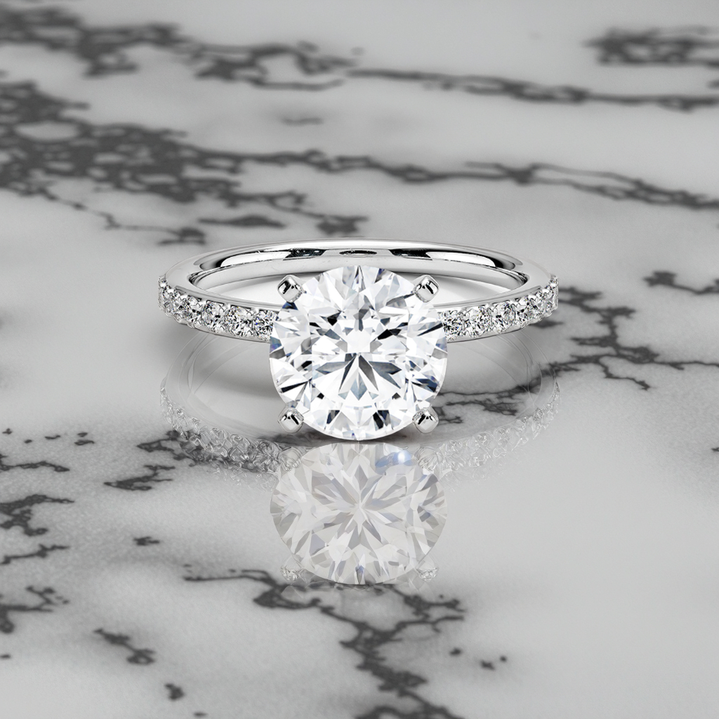 Kadın klasik tasarım yuvarlak kesim nişan yüzüğü 14K & 18K beyaz altın güzel takı 1.8mm Lab yetiştirilen elmas klasik elmas yüzük